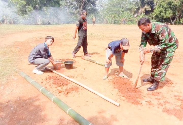 Koptu Tri Waloyo, Babinsa Desa Cikolelet, yang turut membantu warga melakukan penggalian pondasi rumah.