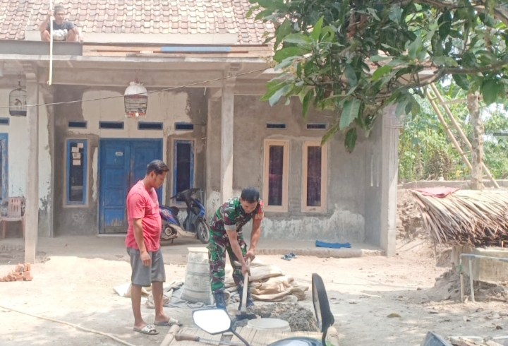 Di Desa Winong, Kecamatan Mancak, Serda Yusep, selaku Babinsa setempat, terjun langsung membantu warga dalam proses pembangunan rumah milik salah satu warga desa.