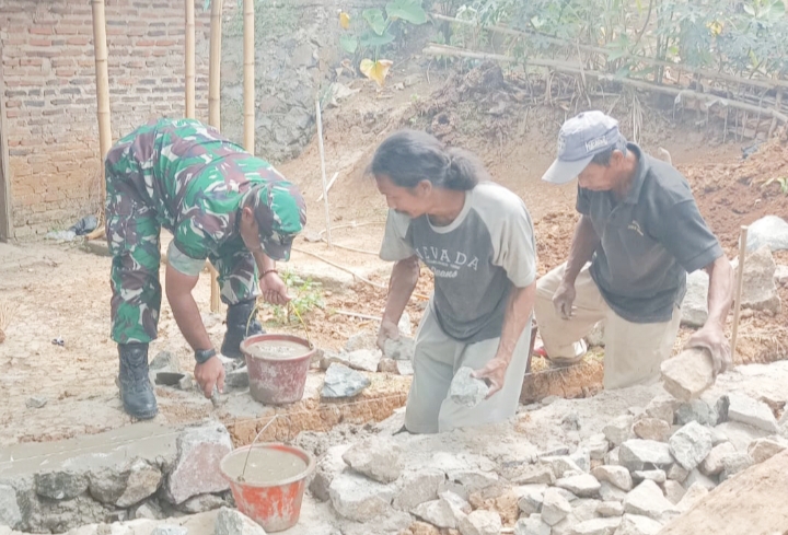 Para Babinsa dari Koramil 2306/Mancak turun langsung ke tengah masyarakat untuk membantu pembangunan infrastruktur desa.