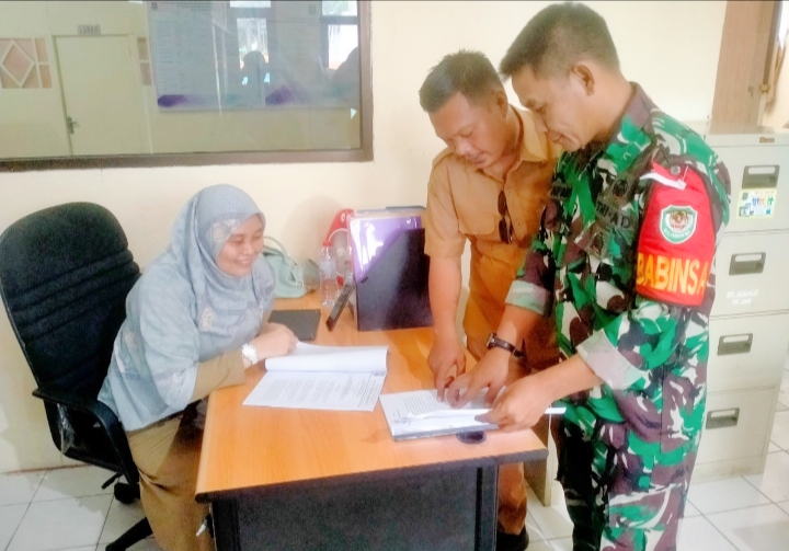 Di Kelurahan Gerem, Serma Agus Hamdani, Babinsa Koramil 2303/Pulomerak, melaksanakan kegiatan pendataan penduduk baru bersama staf Kelurahan Gerem.